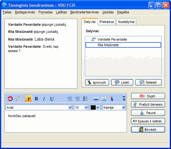 Pokalbis realiame laike (Instant Message)