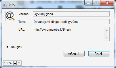2. Meniu komanda Failas (File) / Naujas (New) / Nauja nuoroda (New Bookmark) arba pasirinkus mygtuką ir užpildžius reikalingus laukelius: Vardas (Name), Tema (Subject), URL:
