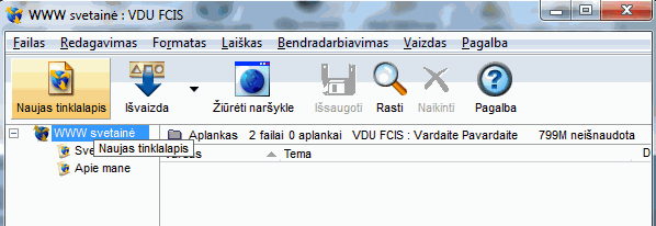 Naujas www puslapis sukuriamas atvėrus WWW svetainė ir vykdant komandą Naujas tinklalapis (New Web Page):