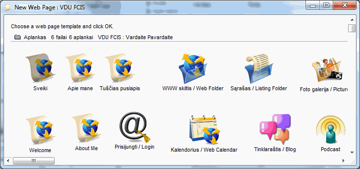 Toliau parenkamas puslapio šablonas: