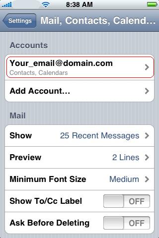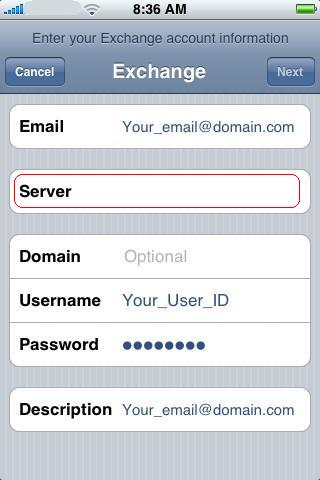 Kad konfigūruoti Jūsų iPhone ActiveSync sekite šią instrukciją: