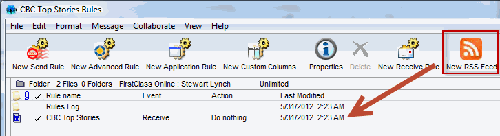 - Conferences and communities now have a new container rule which contains a URL of a RSS feed on the Internet. This form is placed in the containers rules folder and is sent to Internet Services at regular intervals soliciting new items. New items are sent to the container as a message with embedded links back to the full story. Note that the "User ID:" and "Password:" fields below are not currently used but are intended for supporting authenticated "Private" feeds in a future release.
