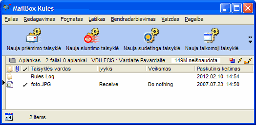 4. Į Mailbox Rules langą įkelti norimus paveikslėlius su komanda Failas (File) / Parsisiųsti failą (Upload)