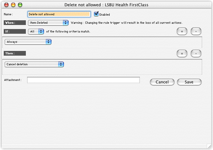 This rule stops the accidental deletion of any assignment. There is also a similar rule in the Copies conference.