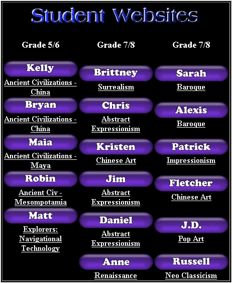 Students create their projects in FirstClass, and Lois provides feedback for them using the FirstClass editor features. If students need to create something outside of the computer, Lois takes digital pictures of the creation and uploads them to FirstClass. When the projects are finished, Lois showcases them on her home page for peers and parents. This is a portion of her home page that showcases student work. Peers and parents simply click on the project they want to see.
