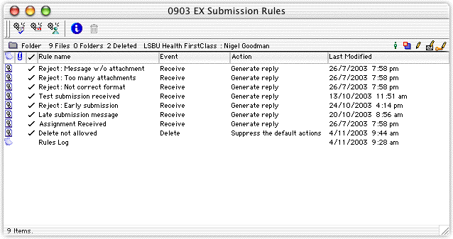 The mail rules sent to the recipient conference are the most important part of the online submission process. There are eight rules in total and the order of the rules is extremely important, because they run in the order they are listed.