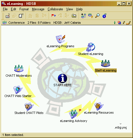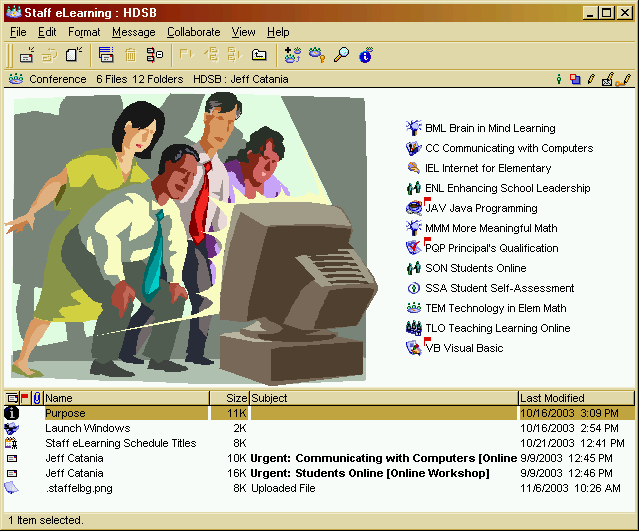 These pilot schools will implement the concept of class conferences, where each class has a main conference for communication. To support these pilot schools, HDSB is running online courses to teach FirstClass to key staff.